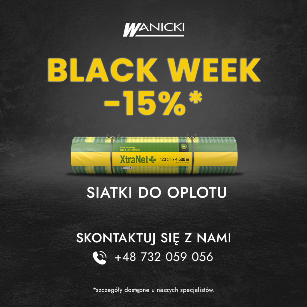 - Rabat 15% na wybrane produkty: folia do zawijania, siatki do oplotu i akumulatory.