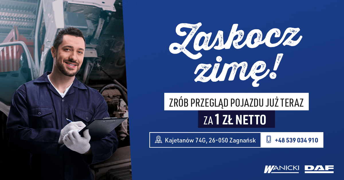 W dniach od 17 listopada do 24 grudnia 2023 oddział Wanicki Kielce (Kajetanów) zaprasza do Autoryzowanego Serwisu DAF na przegląd pojazdów za jedyne 1zł.