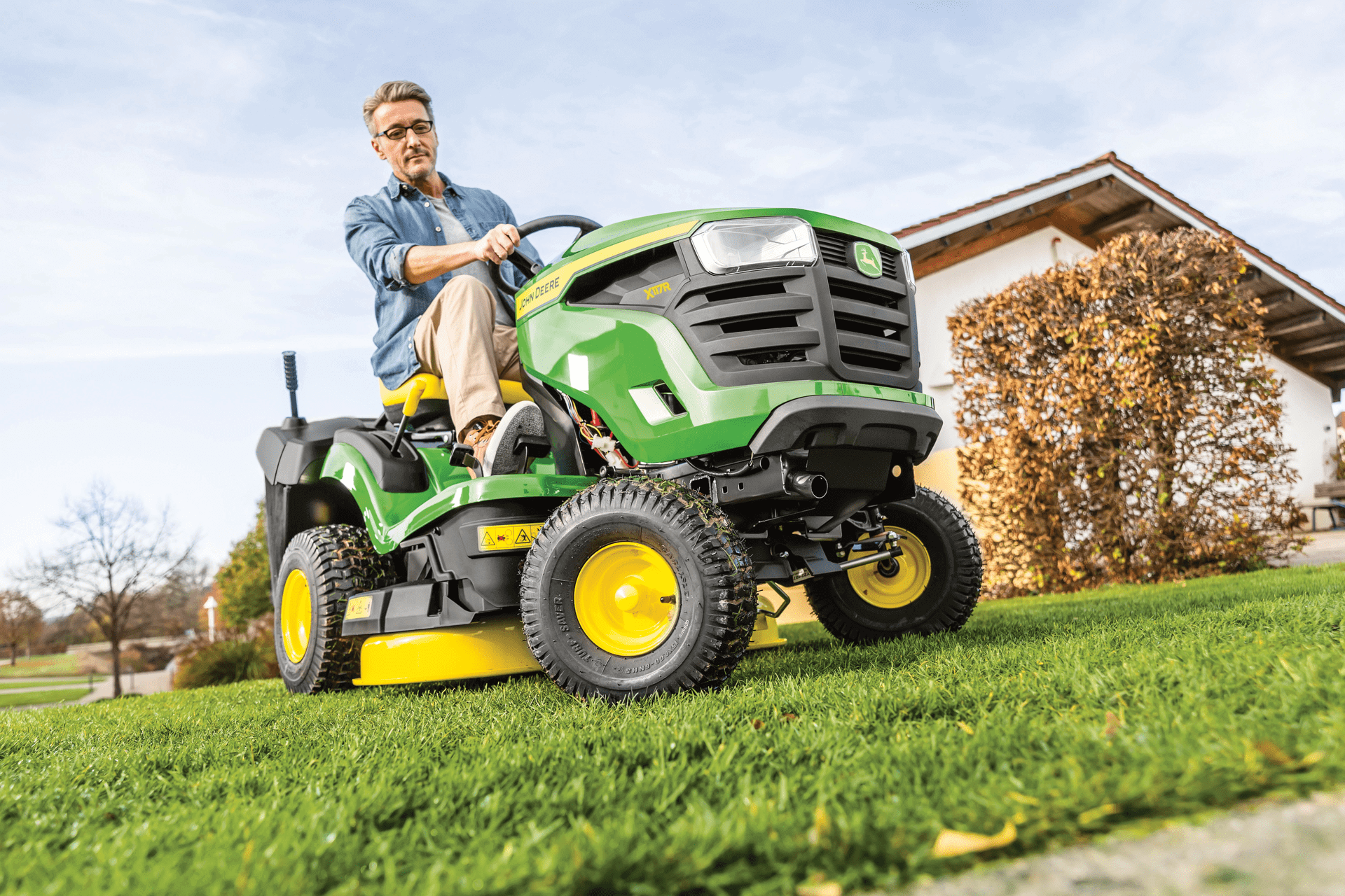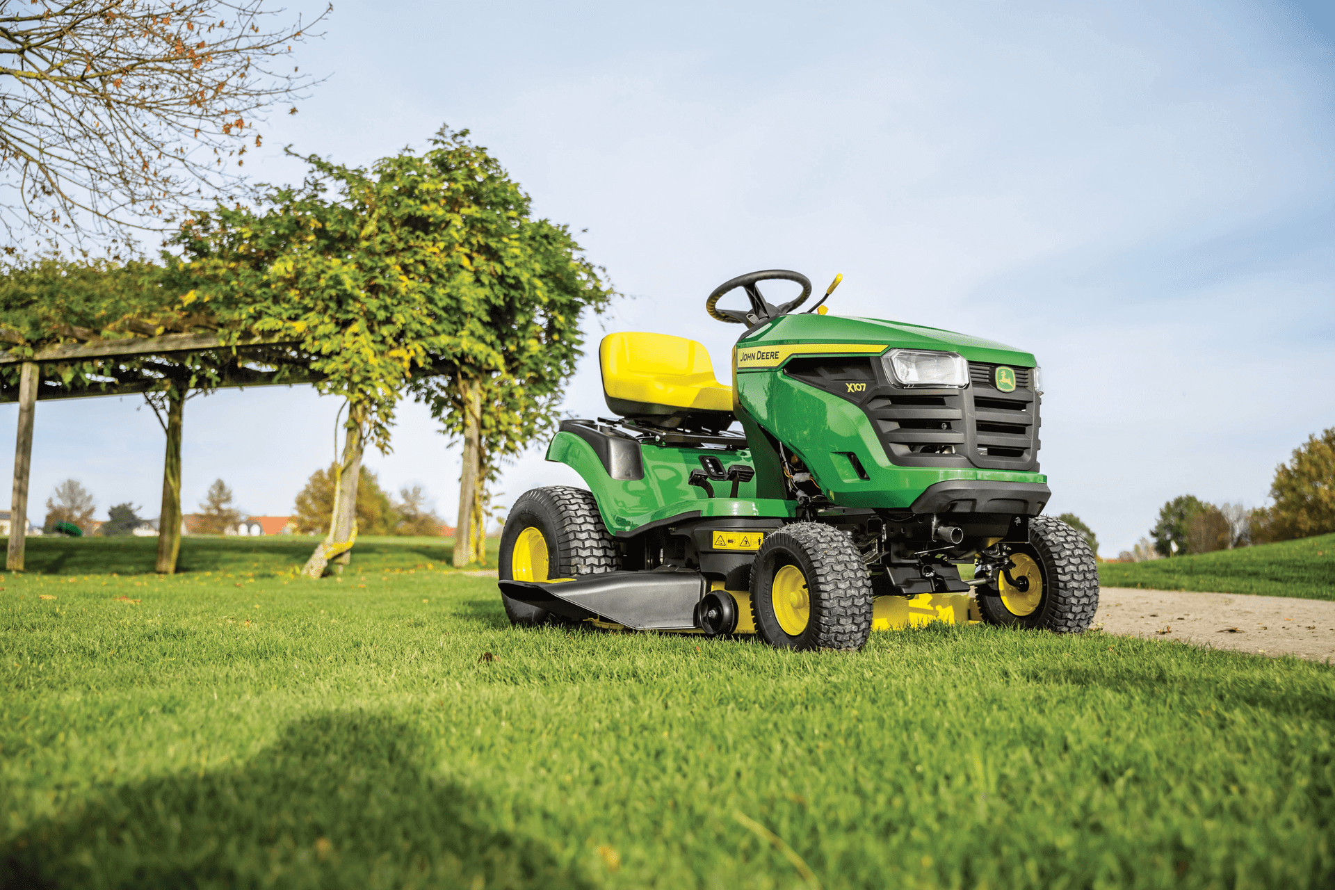 Twój trawnik w perfekcyjnej formie. Szukasz niezawodnej kosiarki samojezdnej, która poradzi sobie z pielęgnacją Twojego trawnika? Postaw na serię X100 od John Deere! Sześć modeli i szeroka gama opcji wyposażenia gwarantują, że znajdziesz idealną maszynę dla siebie. Te wytrzymałe kosiarki są przeznaczone do trawników o powierzchni od 3000 do 6000 m² i zapewniają wieloletnią bezproblemową pracę.