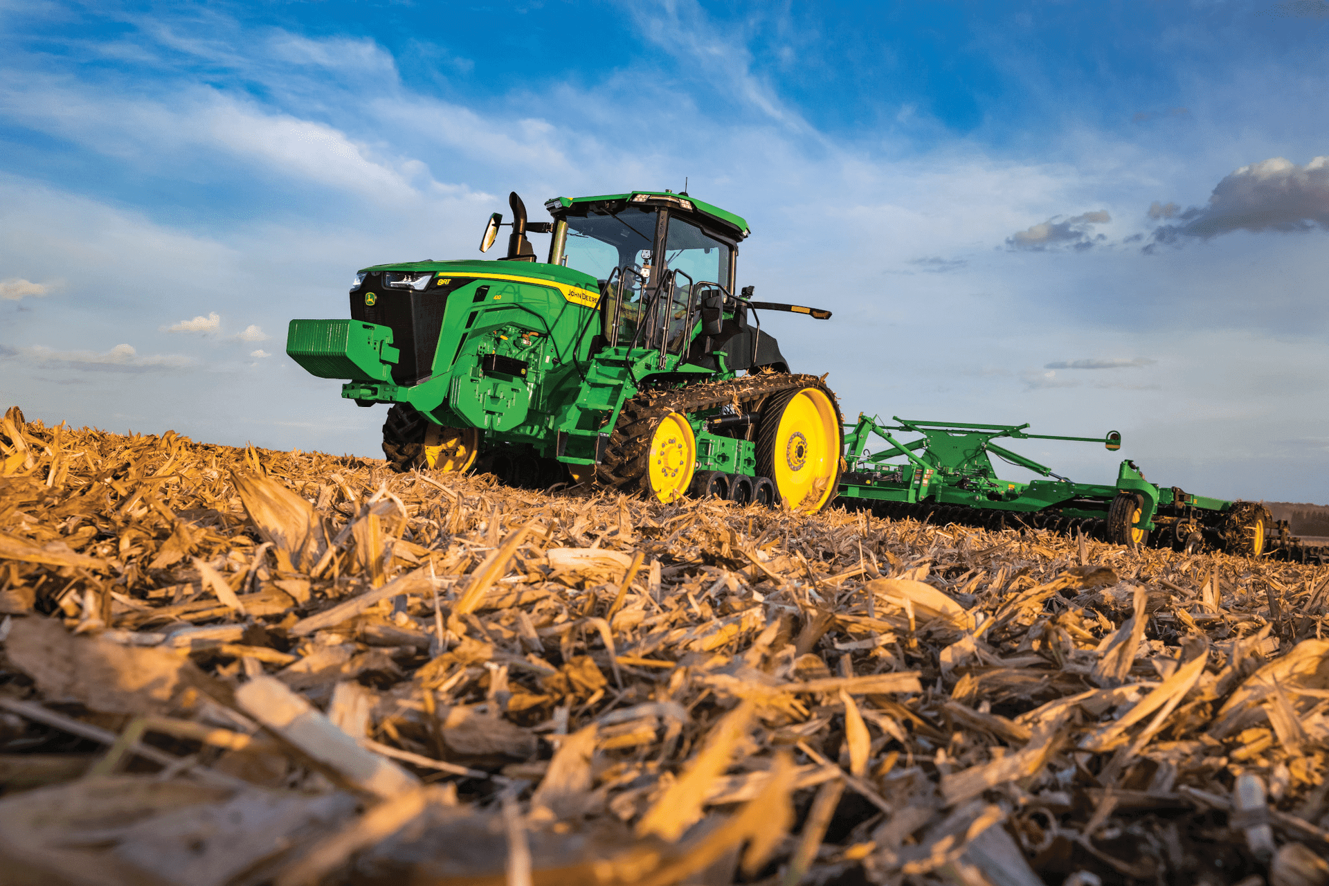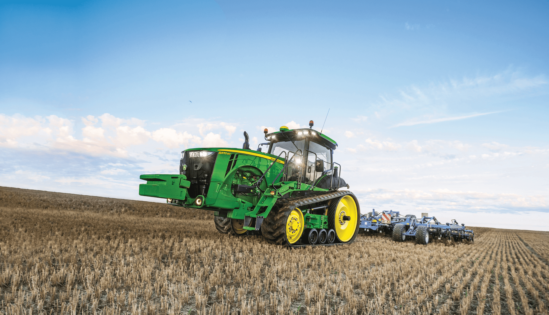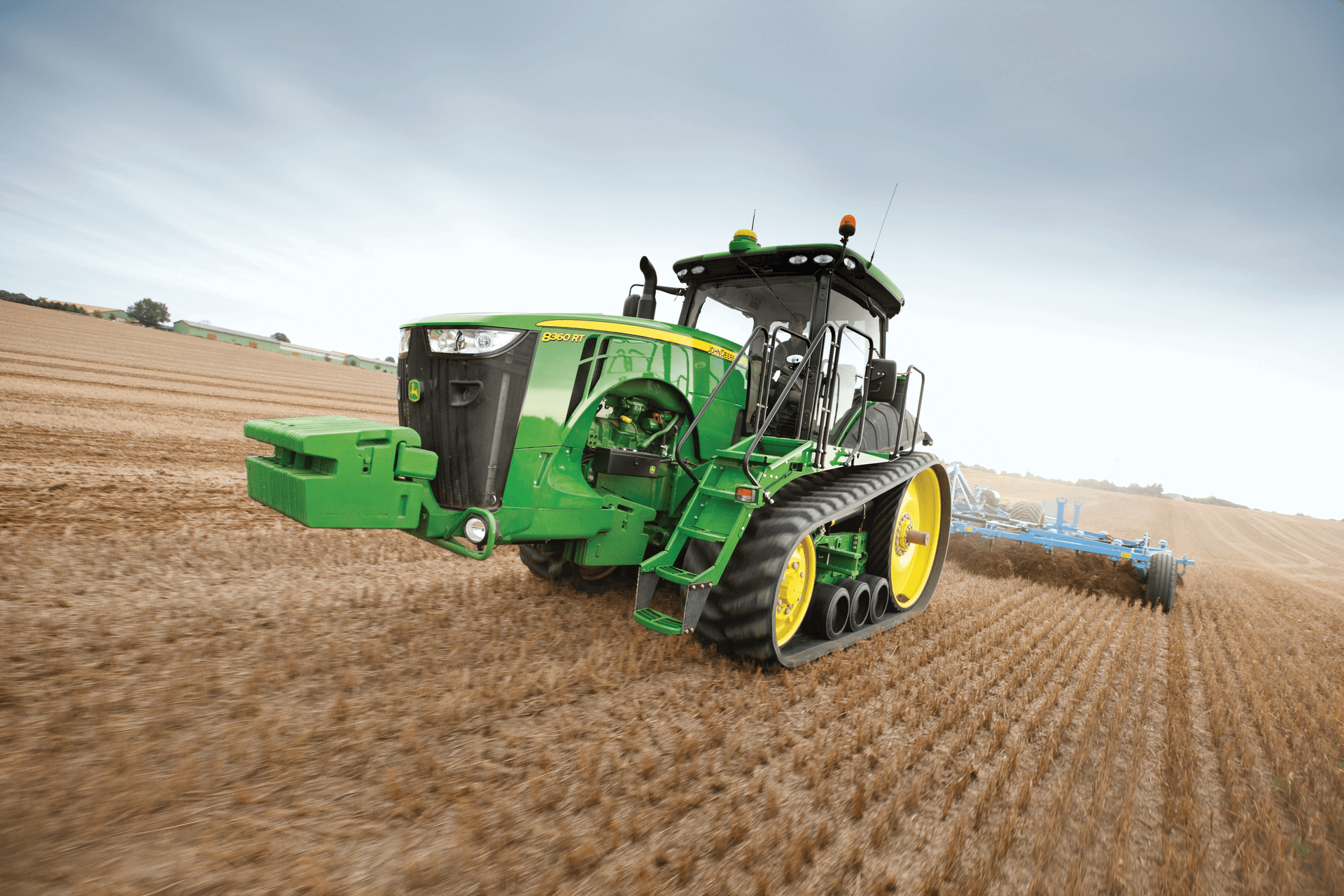 Ciągniki 8RT to prawdziwe bestie uciągu. Wyposażone w gąsienice, zapewniają niezrównaną siłę uciągu w linii prostej, idealnie sprawdzając się na płaskim terenie i suchej, luźnej glebie.